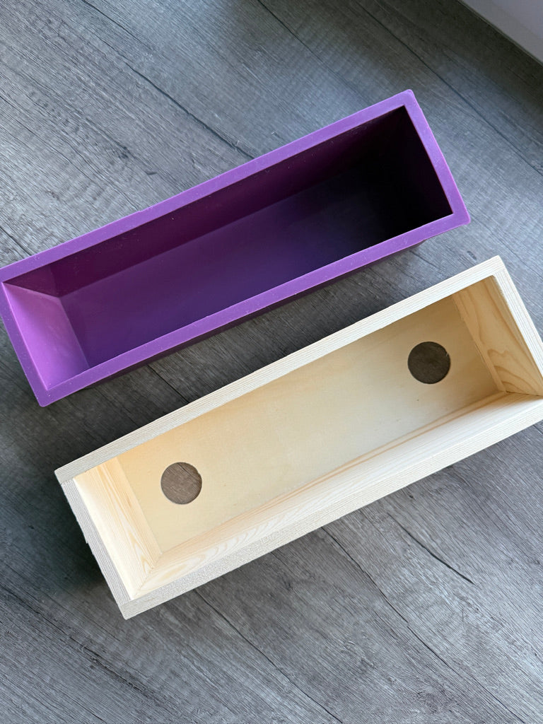 Le moule en silicone se place dans une boite en bois pour lui apporter de la rigidité et maintenir votre pâte à savon pour ne pas qu'elle s'étale.